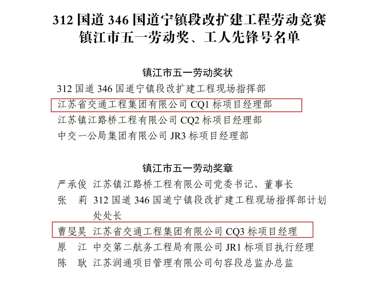 █江蘇交工項目與個人榜上有名