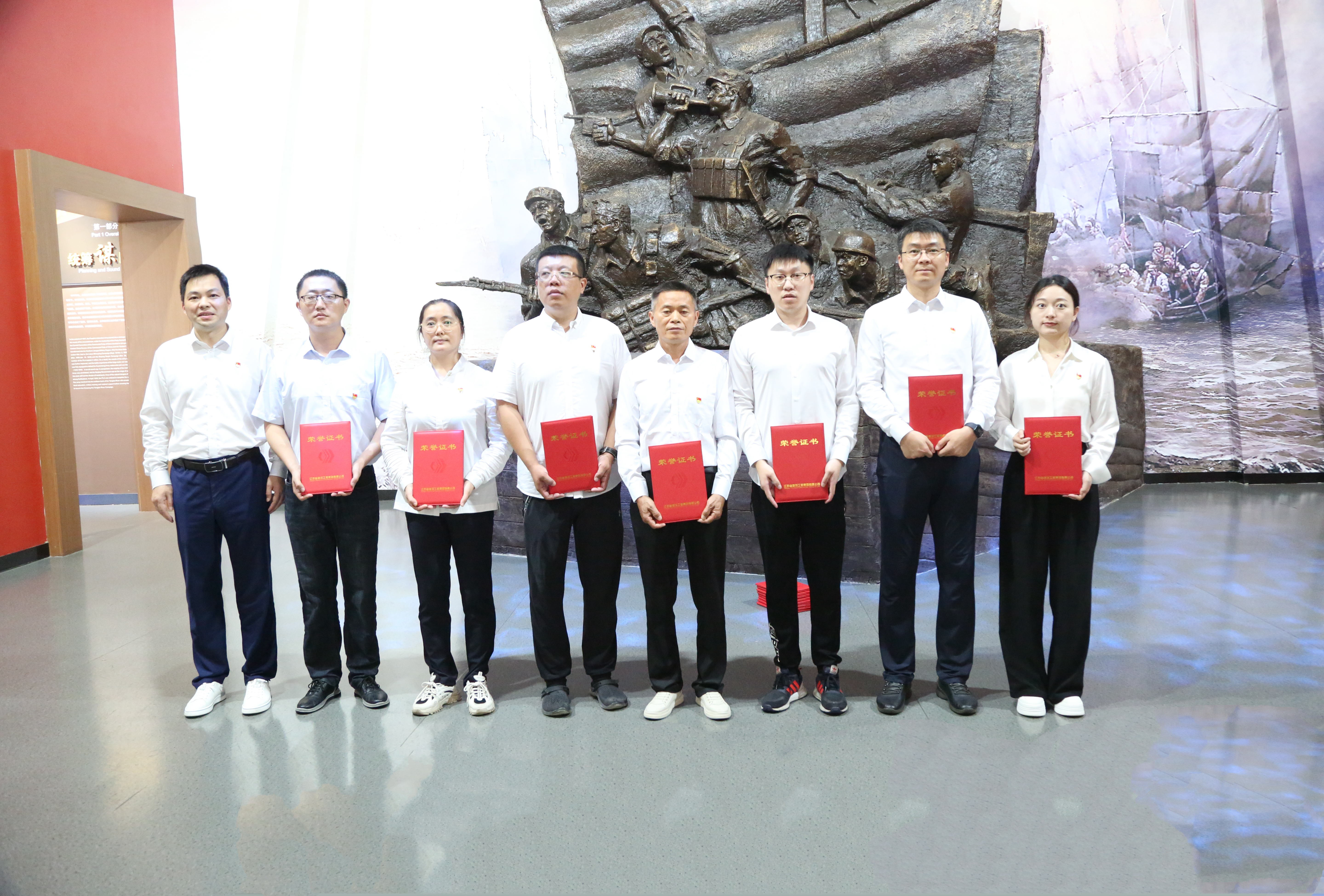 觀看歷史文物,堅定理想信念。在江陰渡江戰(zhàn)役紀念館,全體黨員懷著崇敬的心情,在一張張照片、一件件文物前駐足停留,重溫當年渡江戰(zhàn)役軍民團結(jié)、并肩殺敵的革命歲月,接受深刻的精神洗禮和黨性教育,激發(fā)奮勇向前、團結(jié)奮斗的精神力量。