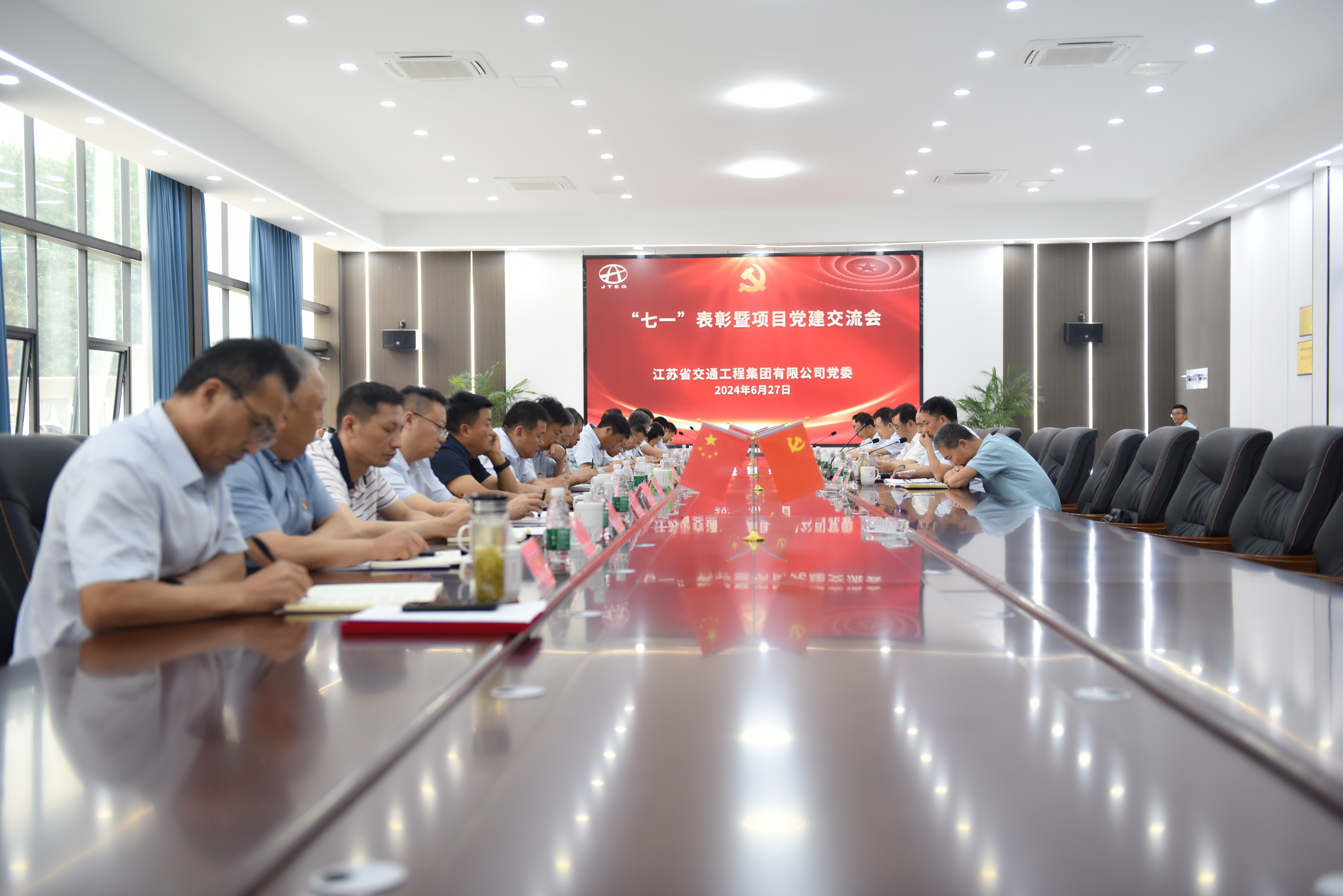 6月27日,江蘇交工在諫壁一線船閘擴容改造工程項目部召開“七一”表彰暨項目黨建交流會,表彰涌現(xiàn)出的先進集體和優(yōu)秀個人,動員激勵各級基層黨組織和廣大黨員,以更加昂揚的斗志、更加奮進的姿態(tài)、更加強烈的擔(dān)當,奮力譜寫江蘇交工高質(zhì)量發(fā)展新篇章。